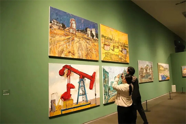 梁宇表示,這是他第8次個(gè)人展覽,與之前的展覽相比有突出的變化。在本次展覽中,作品內(nèi)容更多元,創(chuàng)作風(fēng)格更豐富,既有記憶中那些永不消逝的鐵路風(fēng)景,比如信號燈系列、車站系列、火車系列等;也有心中主觀創(chuàng)造的風(fēng)景,如紅房子系列、道口系列;還有新近創(chuàng)作的現(xiàn)實(shí)風(fēng)景,如克拉瑪依系列。